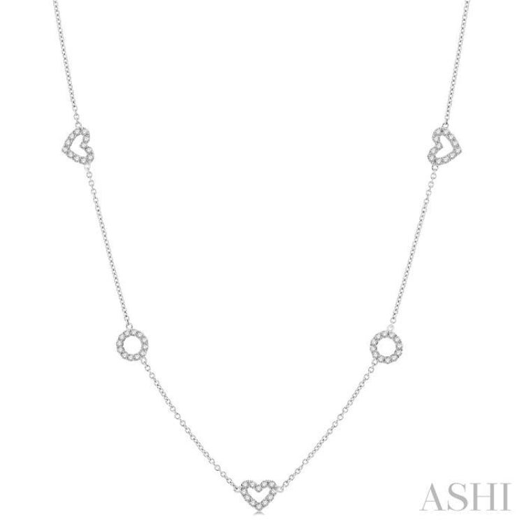 1 Ctw Heart and Circle Round Cut Diamond Station Necklace in 14K White Gold